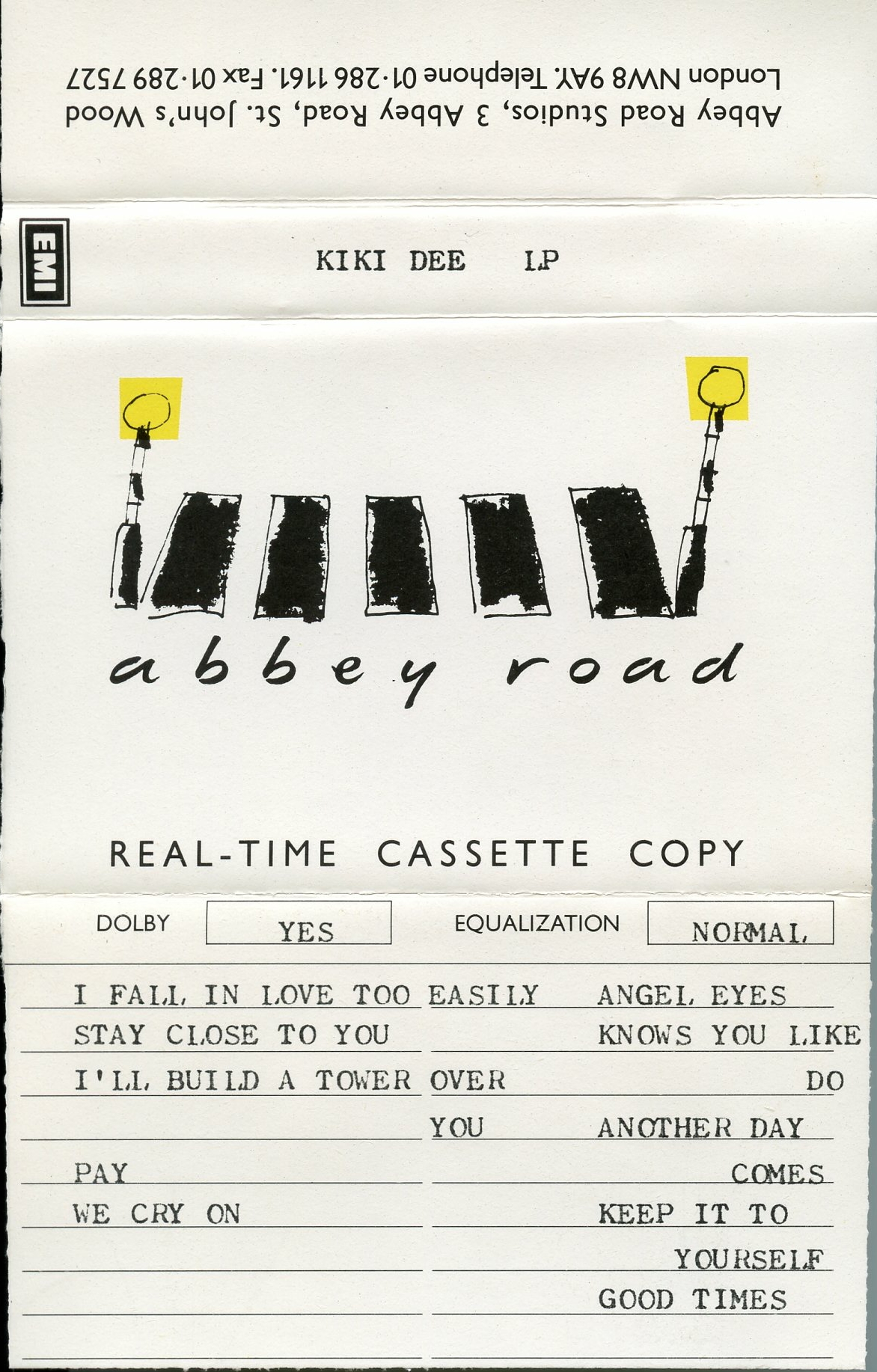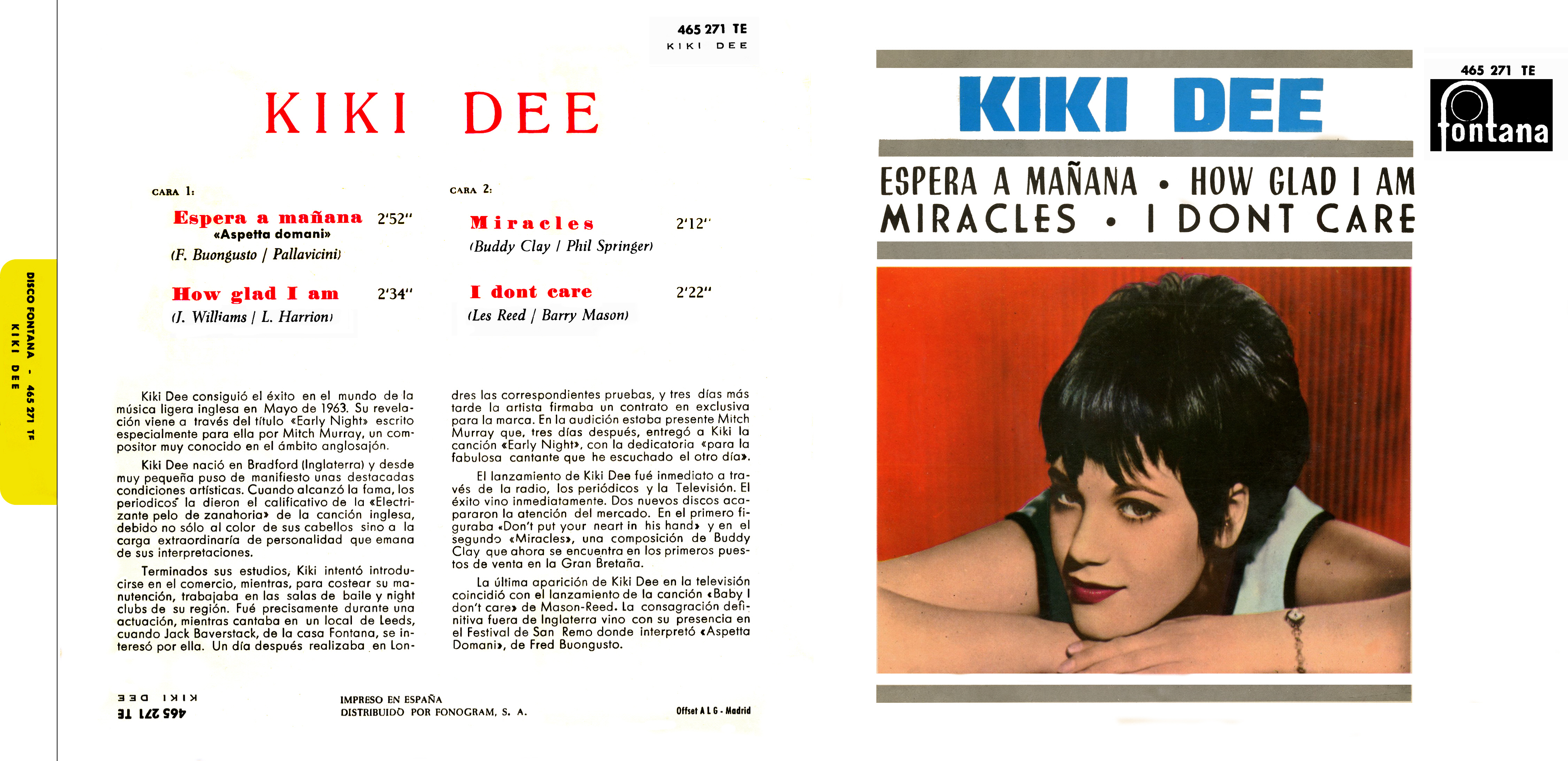 Note: yellow tab to the left of the image reads Disco Fontana - 465 271 TE / KIKI DEE and is attached to the cover though perforated for removal
