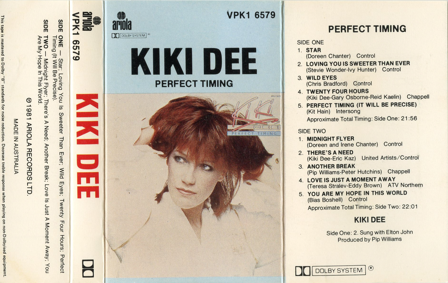 Kiki Dee nació en Bradford (Inglaterra) y desde muy pequeña puso de manifiesto unas destacadas condiciones artísticas. Cuando alcanzó la fama, los periodicos la dieron el calificativo de la «Electrizante pelo de zanahoria» de la canción inglesa, debido no sólo al color de sus cabellos sino a la carga extraordinaría de personalidad que emana de sus interpretaciones.
